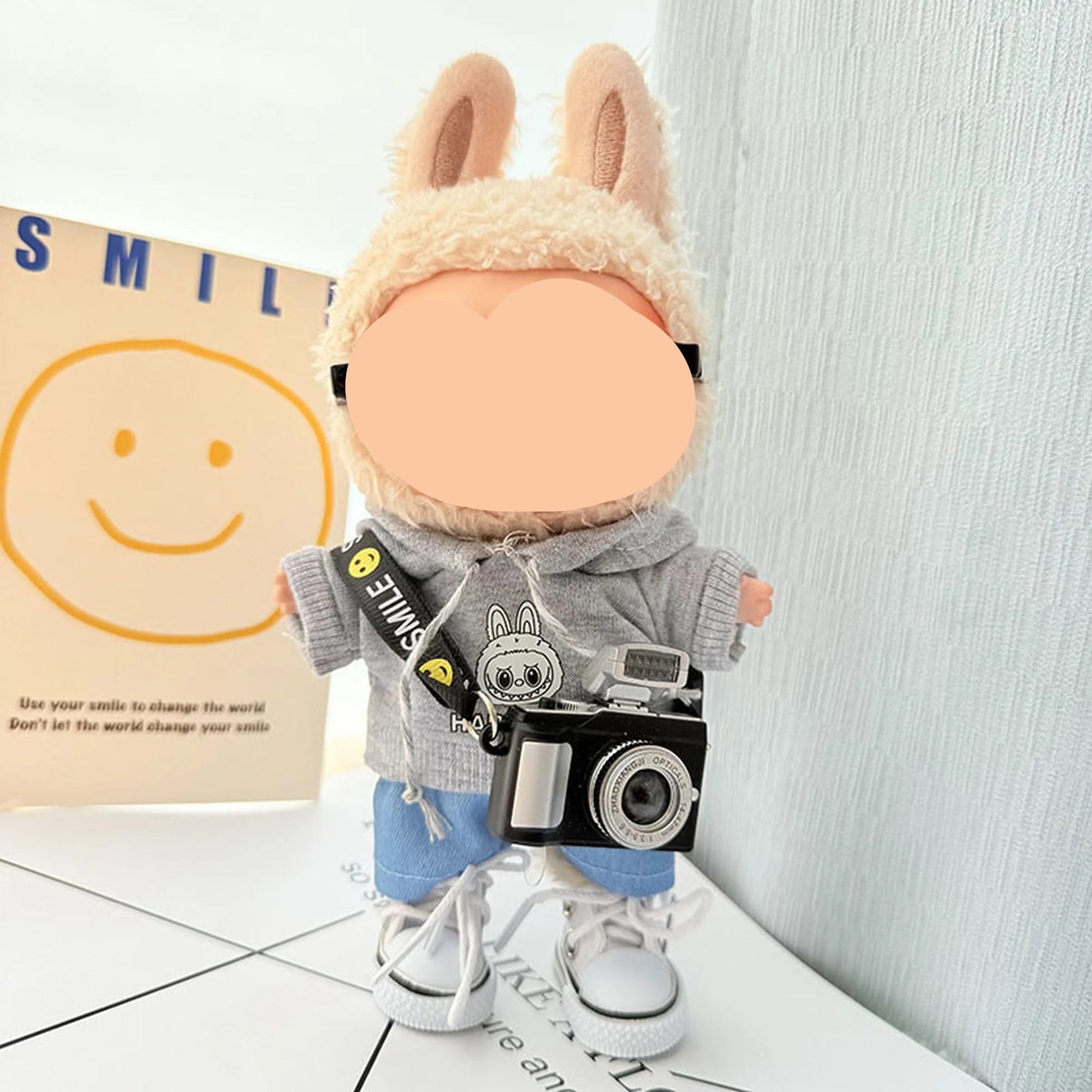 Spring Labubo Clothes Hoodie + Camera Street Wear Labubo Outfits Boy Keychain Labubo Clothing