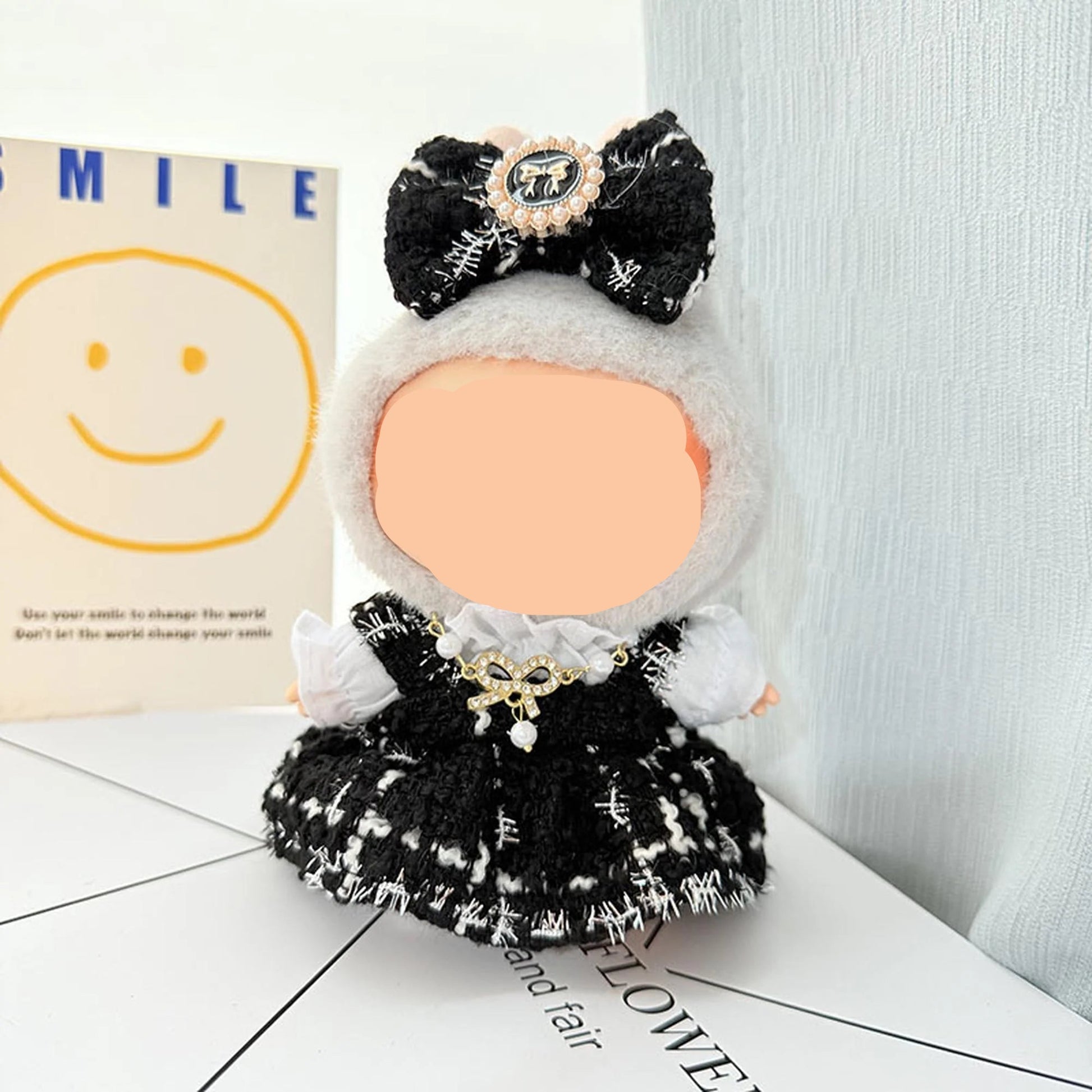Style: Summer Labubo Clothes Tweed Dress + Hairbow Girl Labubo Outfits Keychain Labubo Clothing