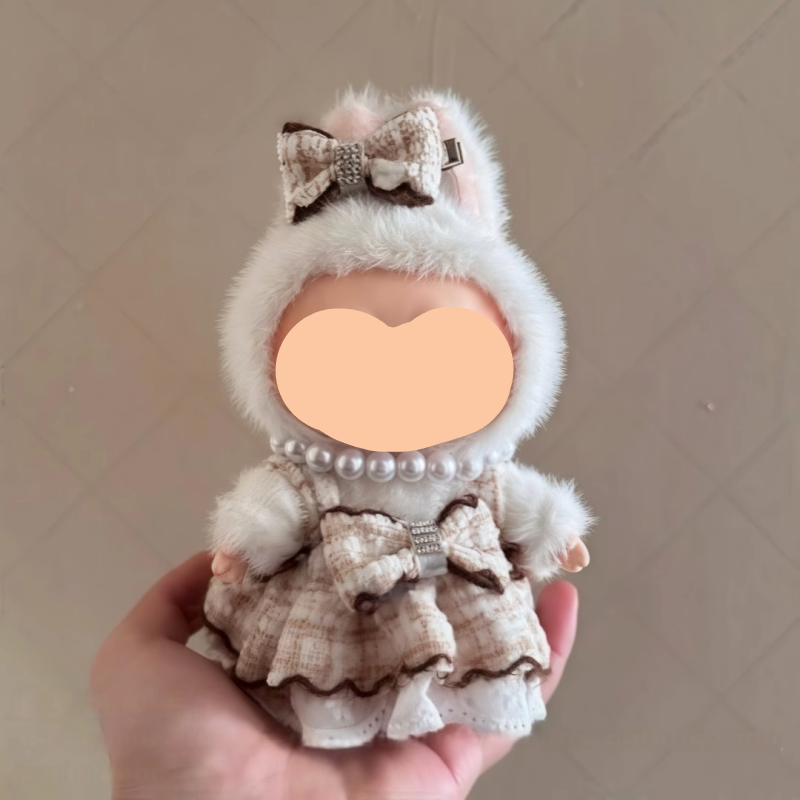 Design: Summer Labubo Outfits Plaided Tweed Dress + Necklace Accessories Fashion Labubo Outfit Keychain Labubo Clothing