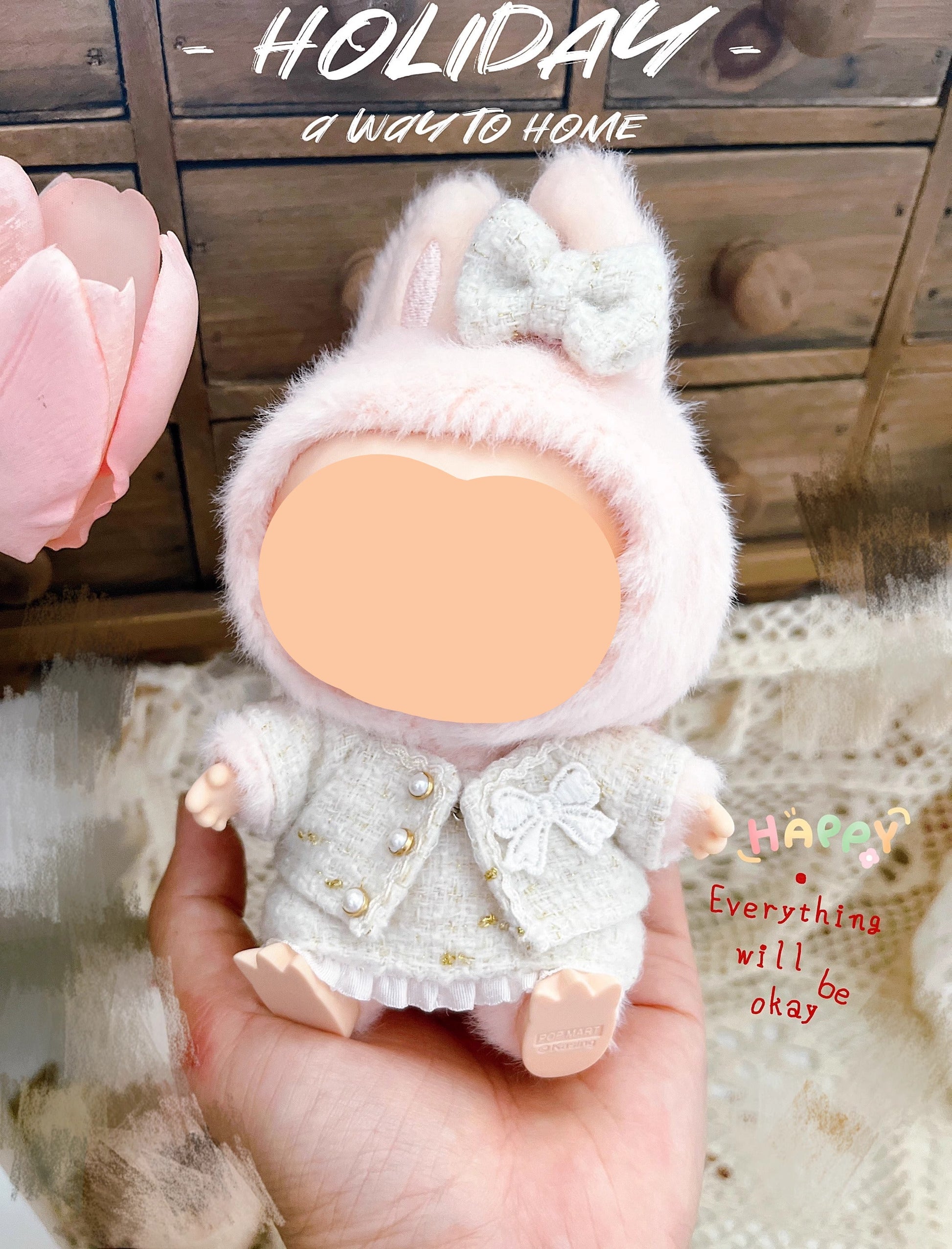 White Tweed Set With Hairbow Keychain Labubo Clothing Labubo Keychain Labubo Clothing