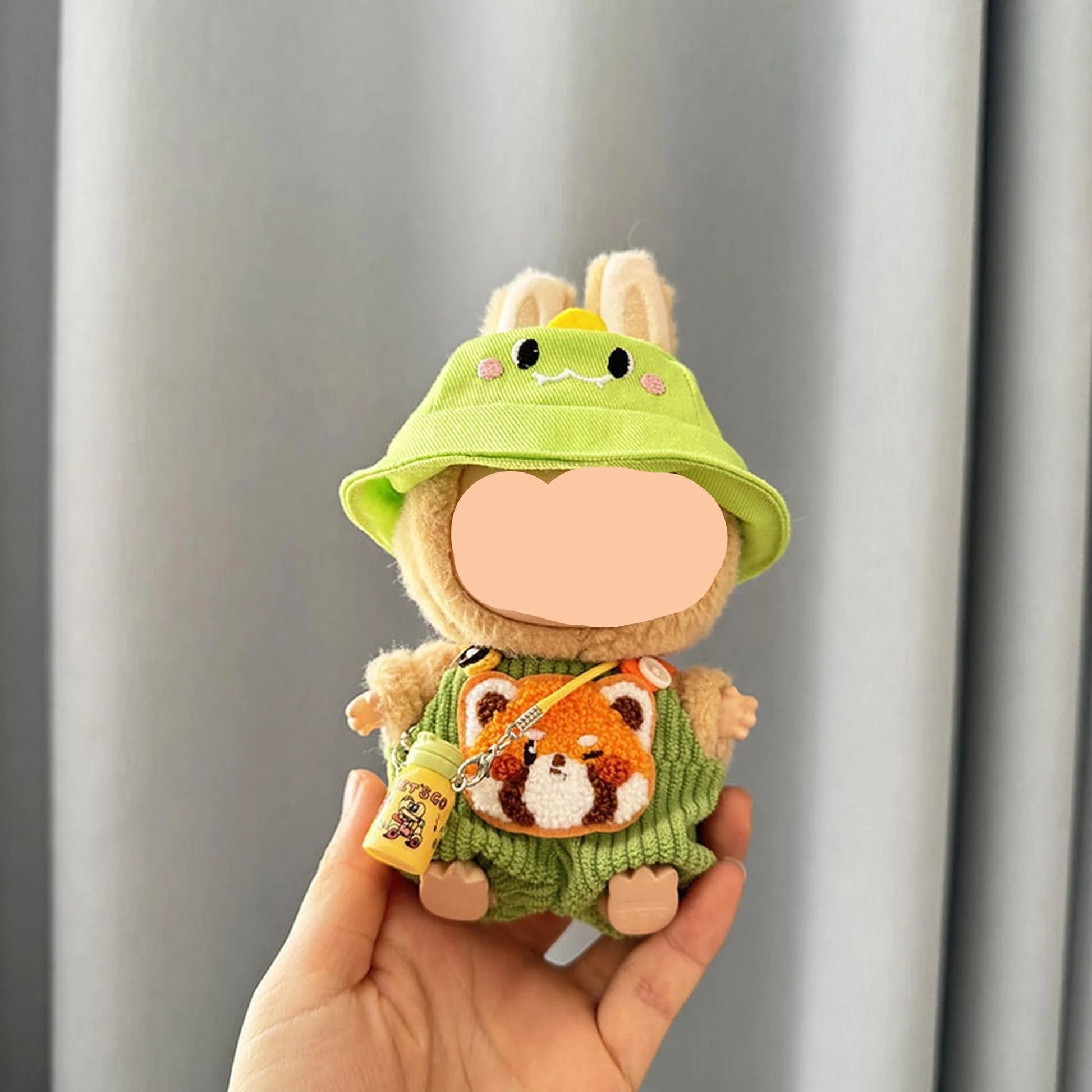 Style: Fall Labubo Clothes Green Overalls With Hat Girl Labubo Outfits Keychain Labubo Clothing