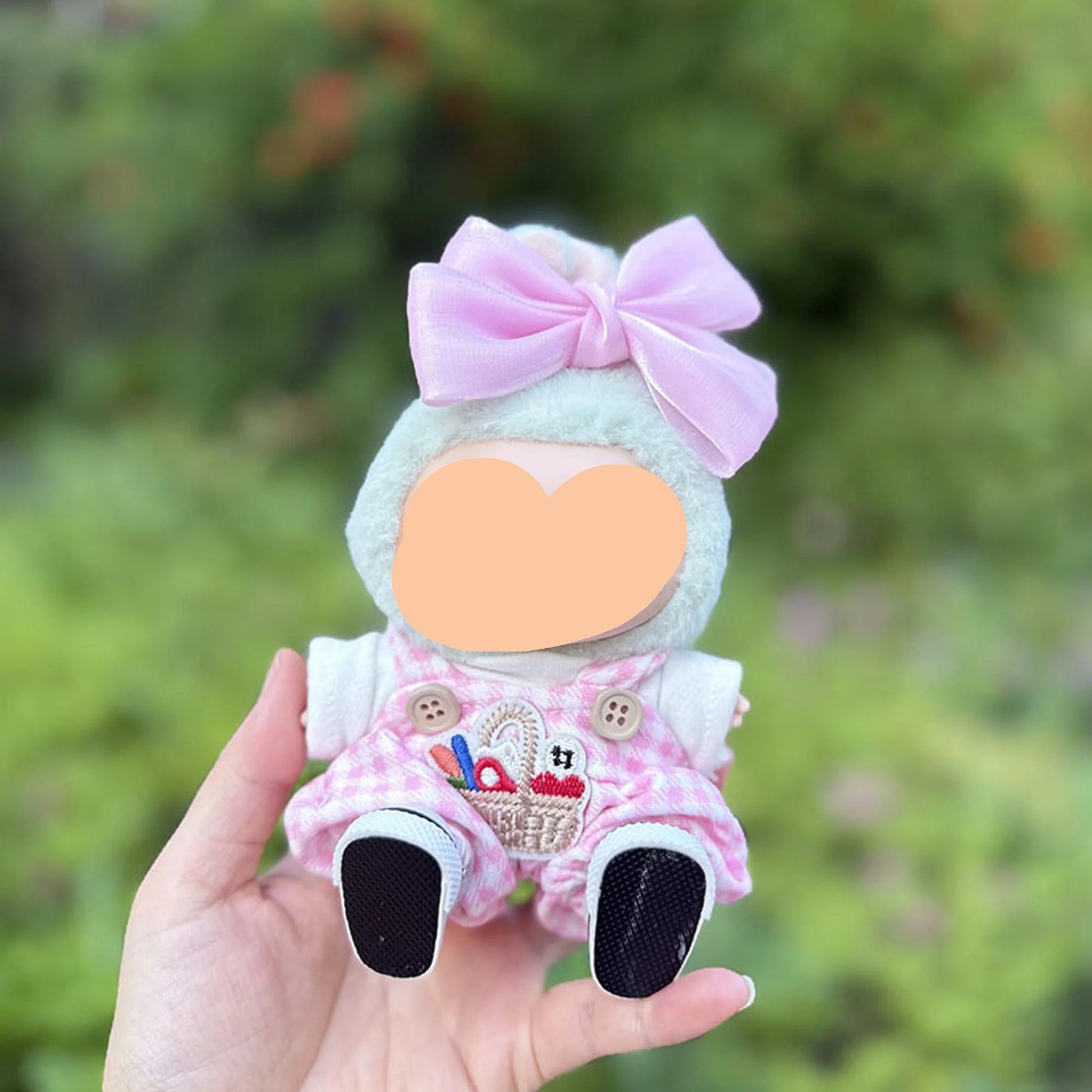 Style: Fall Labubo Clothes Pink Plaid Overalls Girl Labubo Outfits Keychain Labubo Clothing