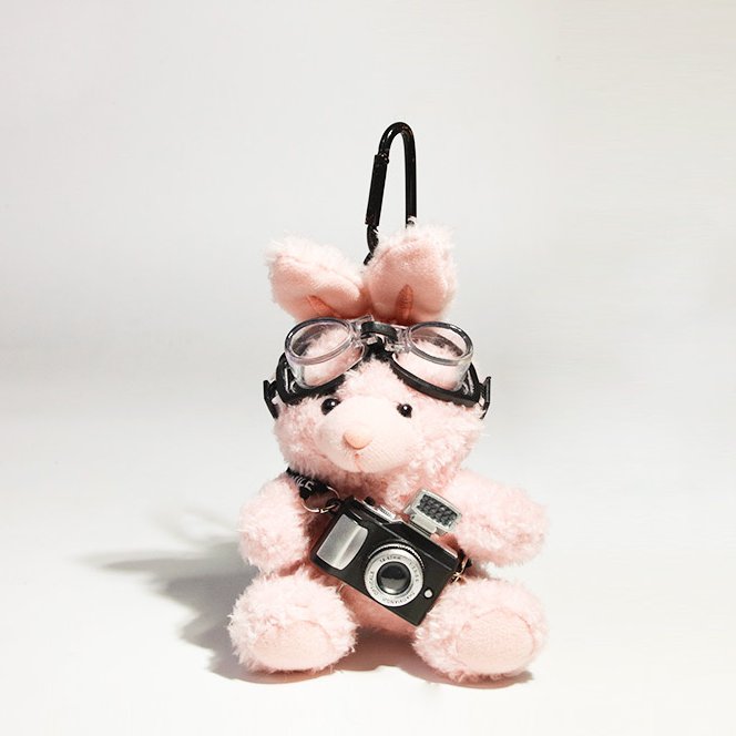 Whether you're a budding photographer, a travel lover, or simply someone who appreciates cute and quirky accessories, our Pink Camera-Holding Aviator Bunny Bag Charm is sure to capture your heart. This little pink aviator bunny is ready to document all of life's adventures, making it an ideal companion for your bag, backpack, or keychain.