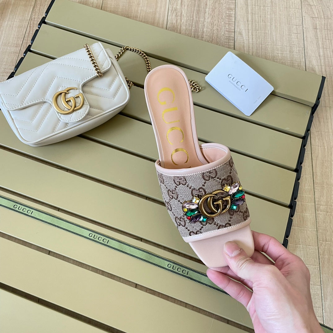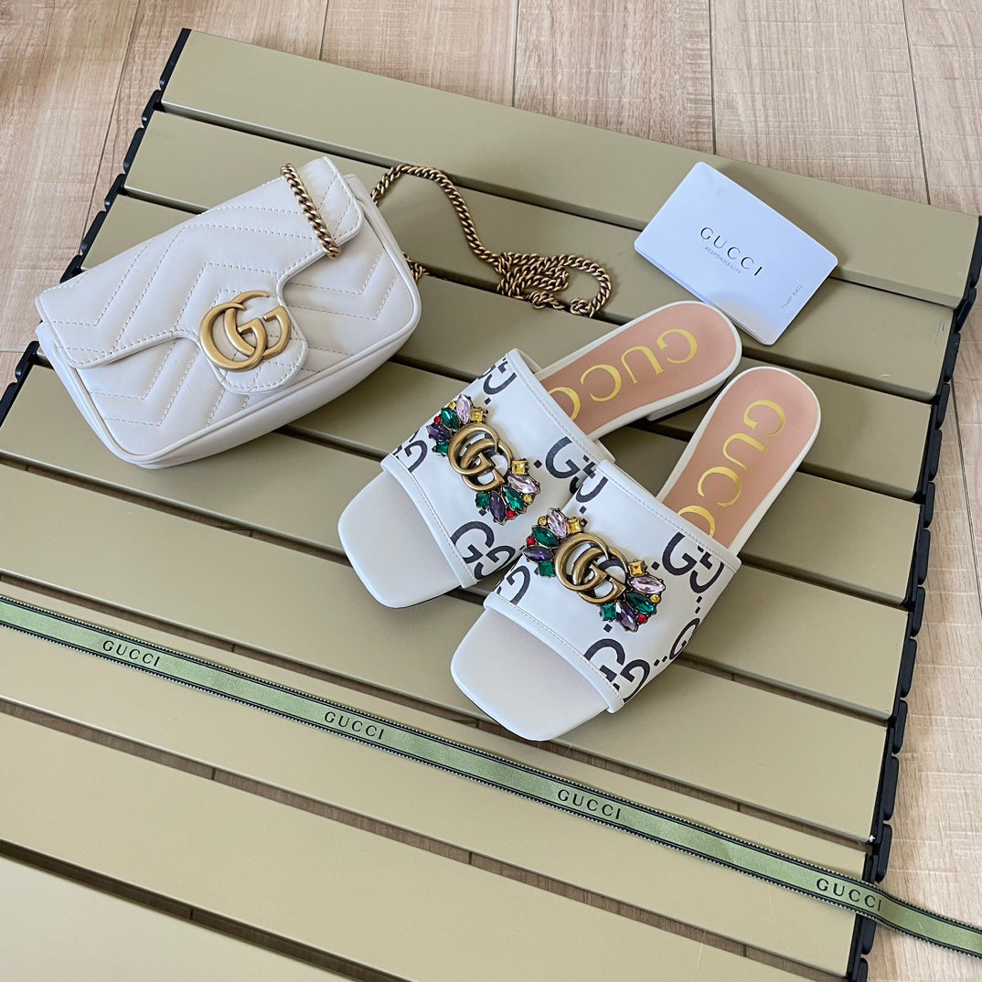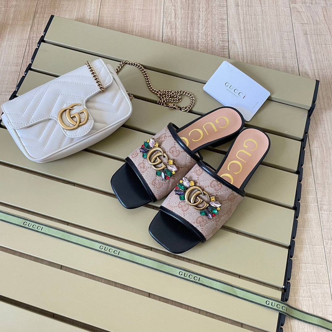 - Deze sandaal is gemaakt van klassiek G-canvasmateriaal met twillquilting. Op ingenieuze wijze versierd met accessoires in de vorm van een dubbele G uit de collectie uit de jaren 70. Een tijdloos design brengt een eerbetoon aan de lange designtraditie van het merk.