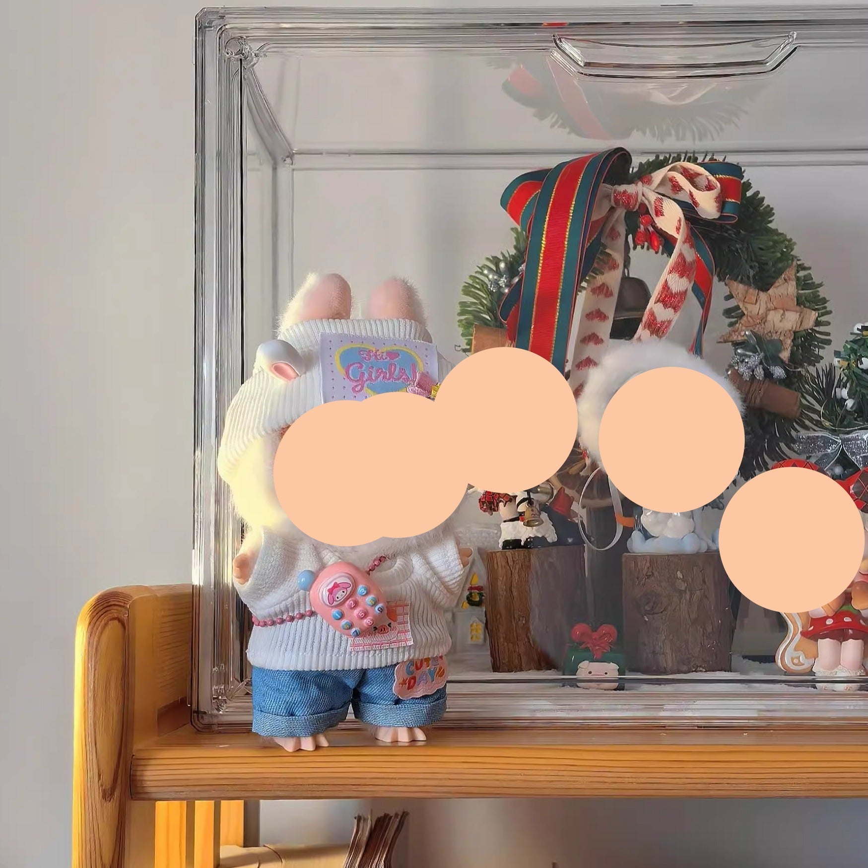 Design: Winter Labubo Outfits White top + Jeans Accessories Style Labubo Outfit Keychain Labubo Clothing
