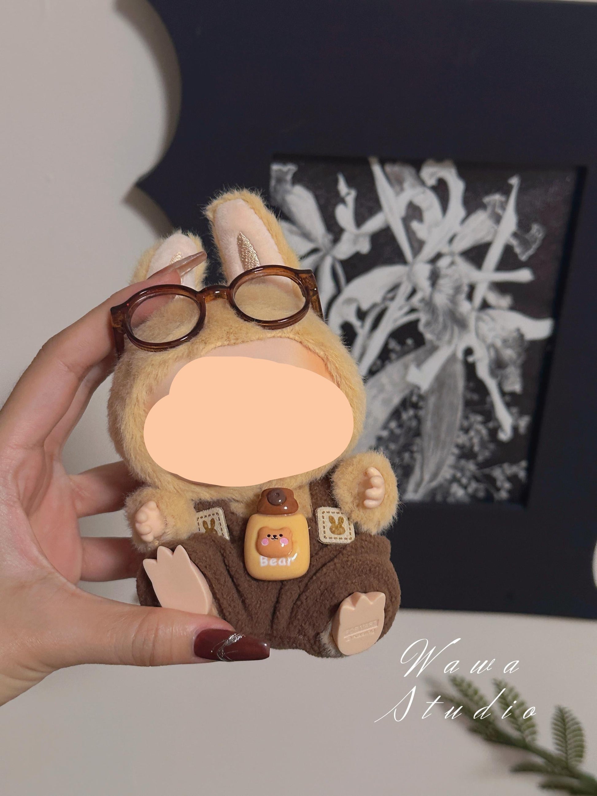 Design: Bear Overalls with Glasses Have a Seat Labubo Doll Clothes Macaron Clothes for Labubo Keychain Labubo Clothes 17cm Labubo Clothing