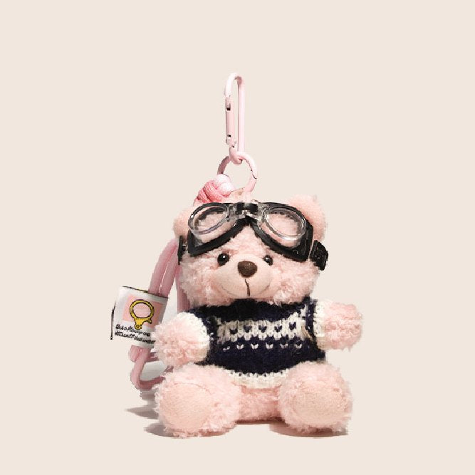 Introducing our adorable Black and White Sweater Pink Aviator Bear Bag Charm - a delightful accessory that combines cuteness with a touch of adventure and style!