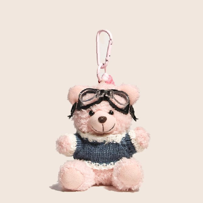 Whether you're a fan of aviation-inspired accessories, love teddy bears, or simply want to add a touch of whimsy to your everyday carry, our Blue Sweater Pink Aviator Bear Bag Charm is the perfect choice. This little pink aviator bear, sporting a navy blue sweater, is ready for any adventure, big or small, making it an ideal companion for your bag, backpack, or keychain.