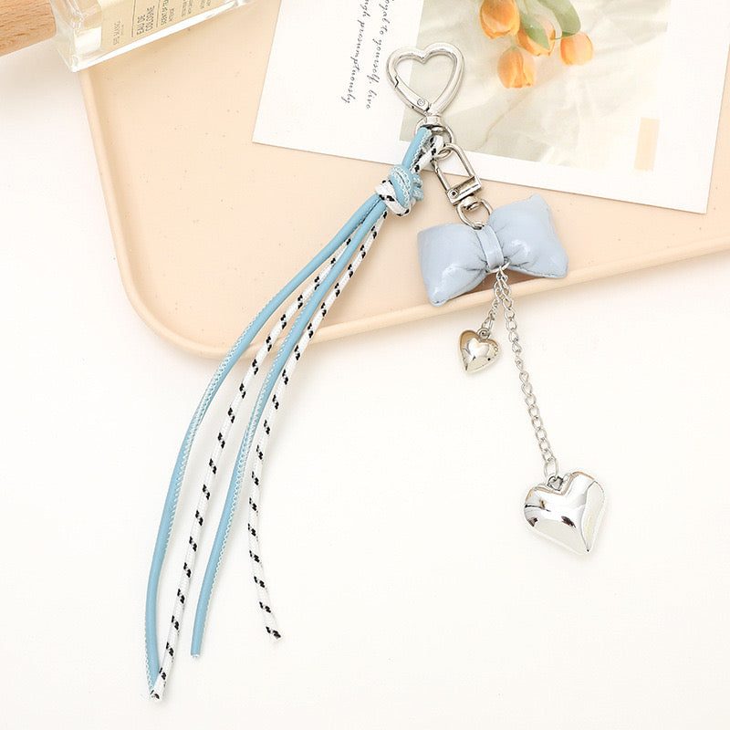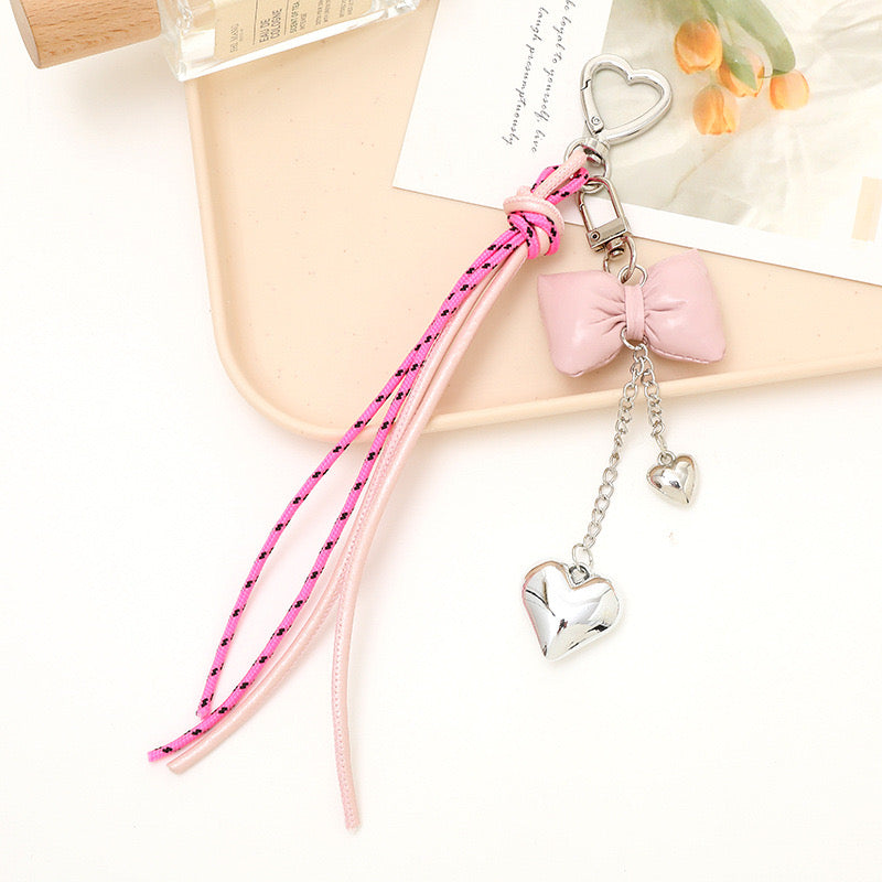 Introducing our delightful Bow & Heart Bag Charm - a stylish embellishment for your favorite handbag or tote!