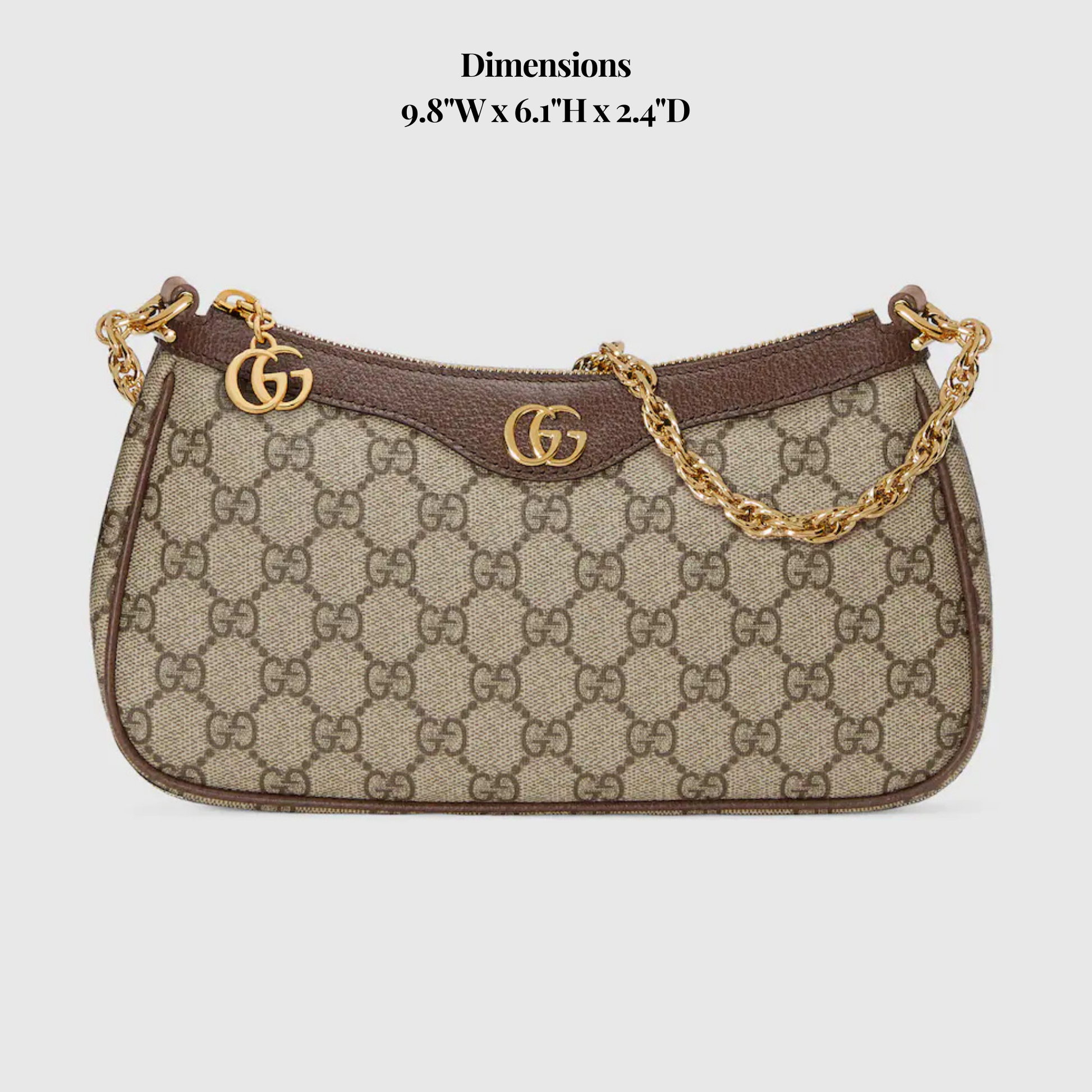- Gold-tone hardware & chain strap