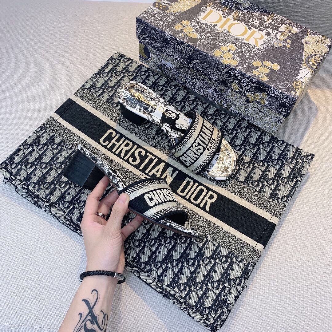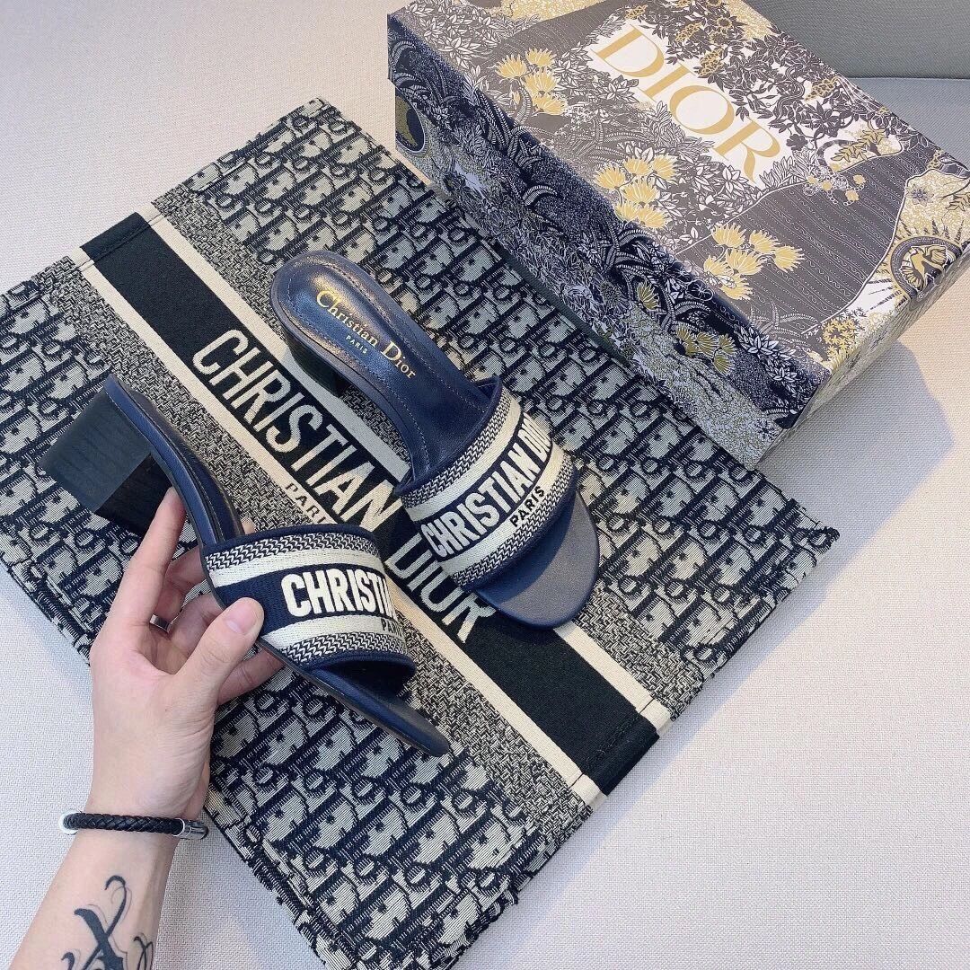 - The Dway cotton strappy slide is a classic piece. Bold logo embroidery accents the vamp. The 4cm block heel is stylish and versatile for a modern look.