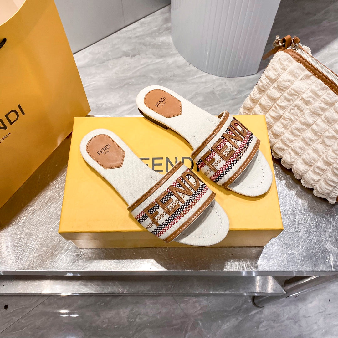 Embroidered Letters Flat Slippers