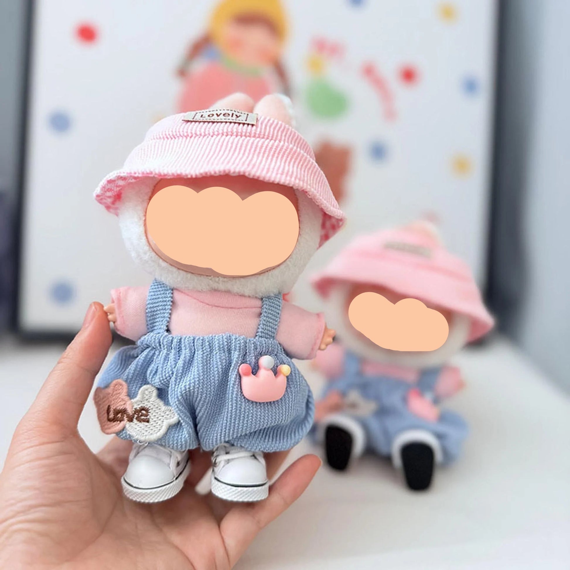 Style: Fall Labubo Clothes Blue Overalls + Pink Hat Girl Labubo Outfits Keychain Labubo Clothing
