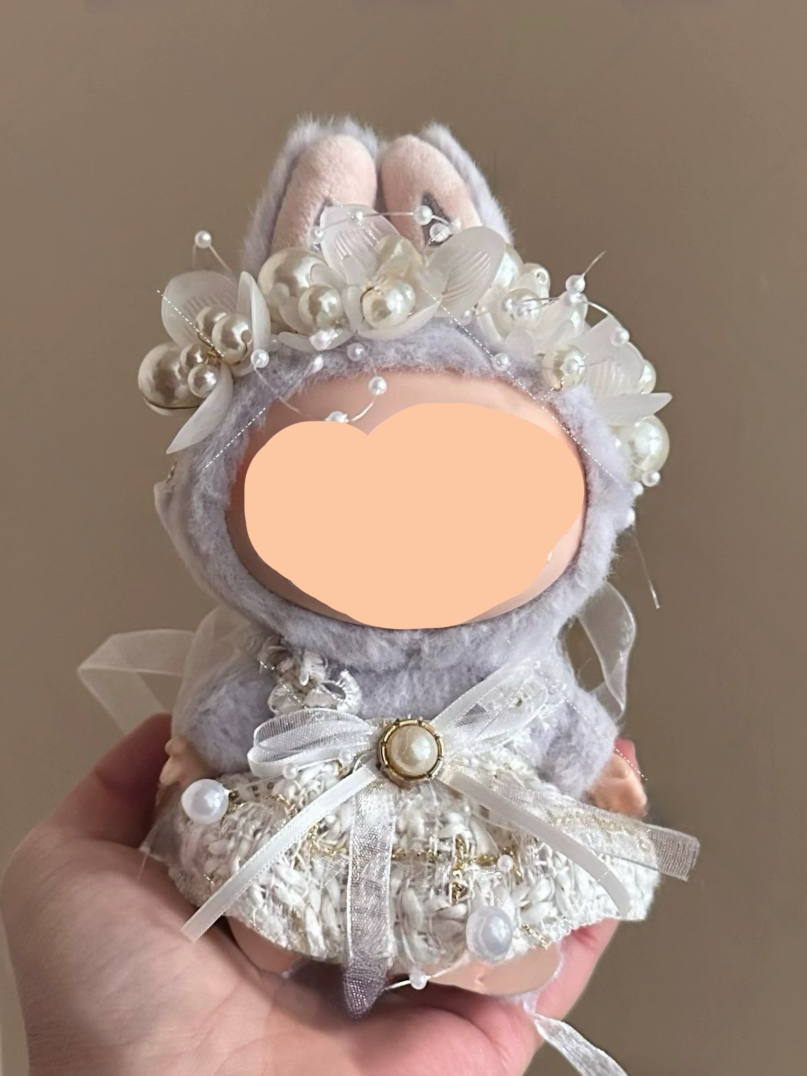 Style: Labubo Clothes 17cm Labubo Clothing Wedding Dress with Hair Accessories Have a Seat Labubo Doll Clothes