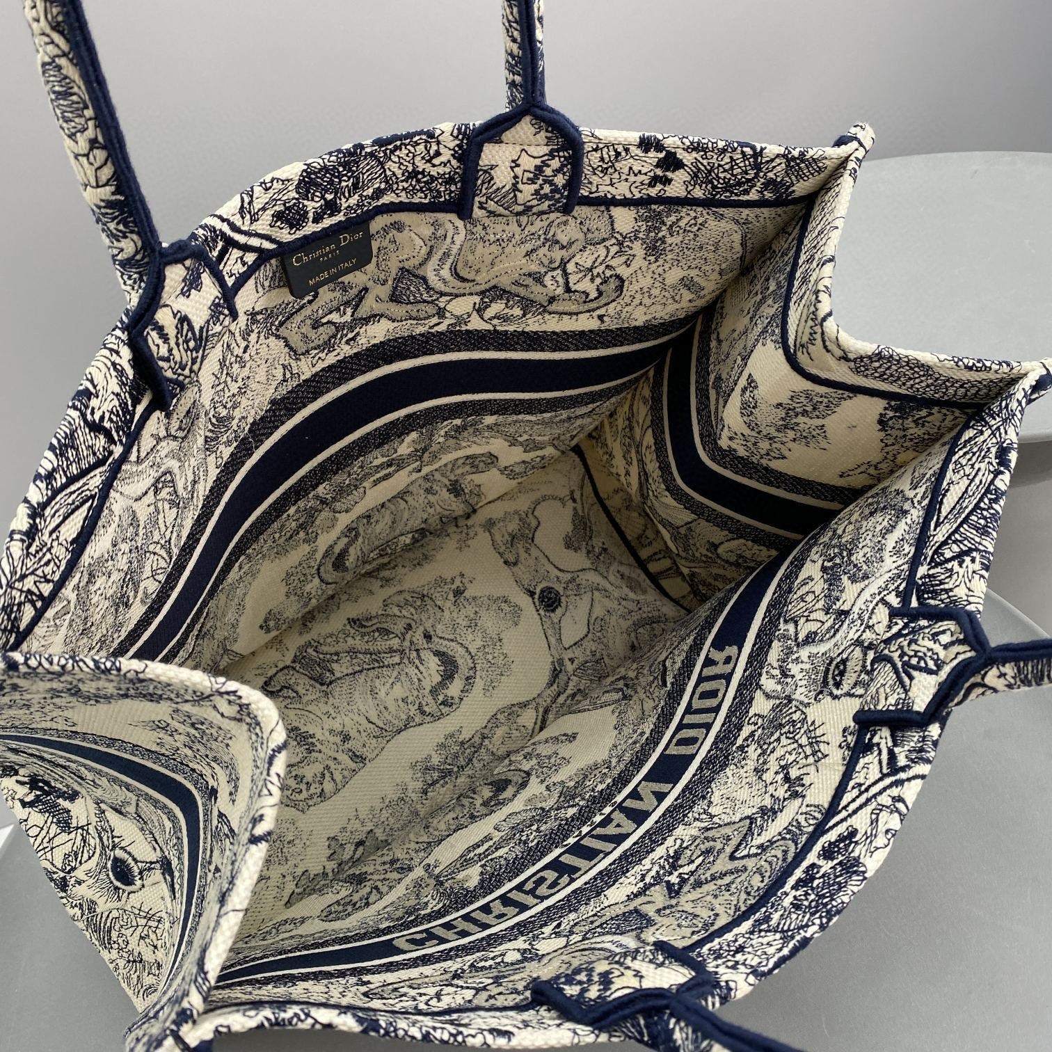 luxury Book Tote Large Blue Toile de Jouy Embroider - 42 x 35 x 18.5 cm