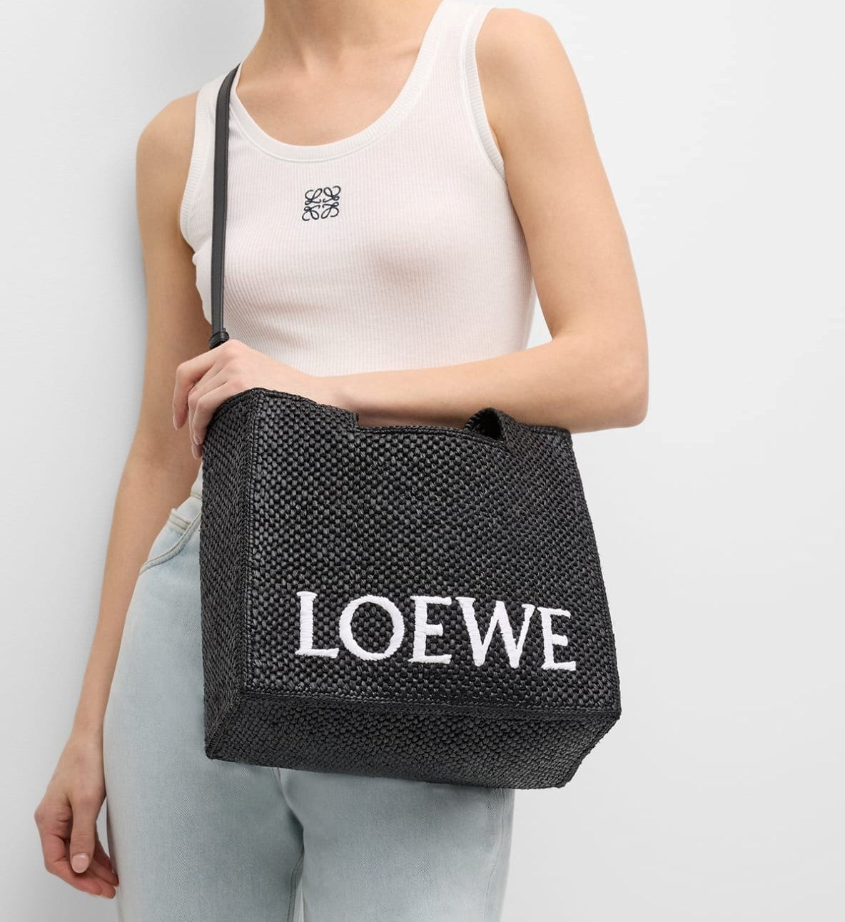 Loewe raffia, leather, and viscose tote bag with logo accent?