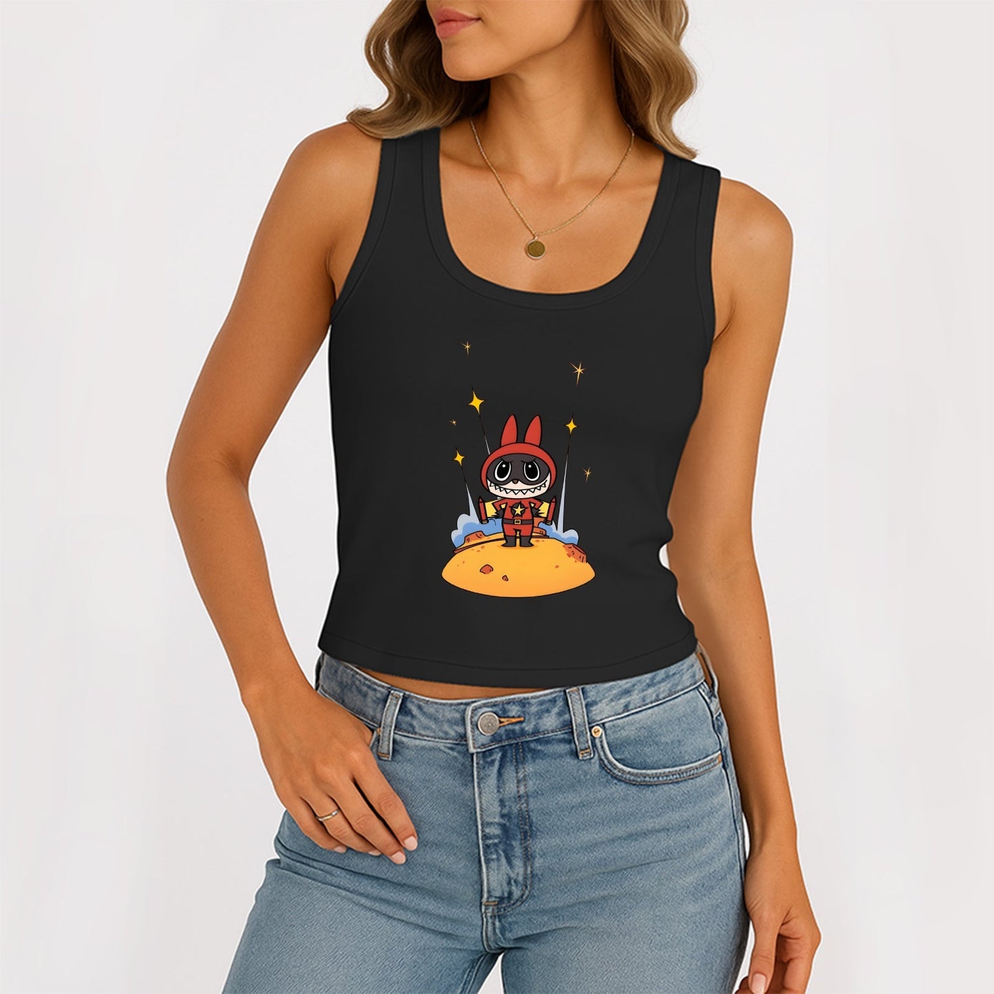Super Labubu The Monsters Women's Sleeveless Scoop Neck Ribbed Tank Summer Basic Slim Cute Tops For Labubu Lover