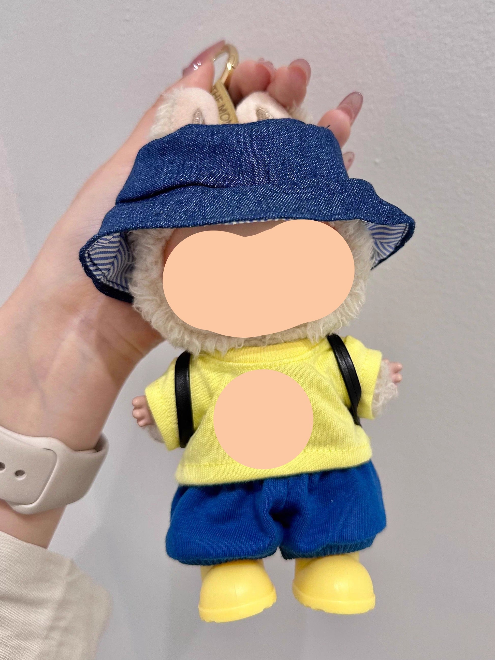 Style: Summer Labubo Outfits Yellow Shirt + Blue Pants Accessories Fashion Labubo Outfit Keychain Labubo Clothing