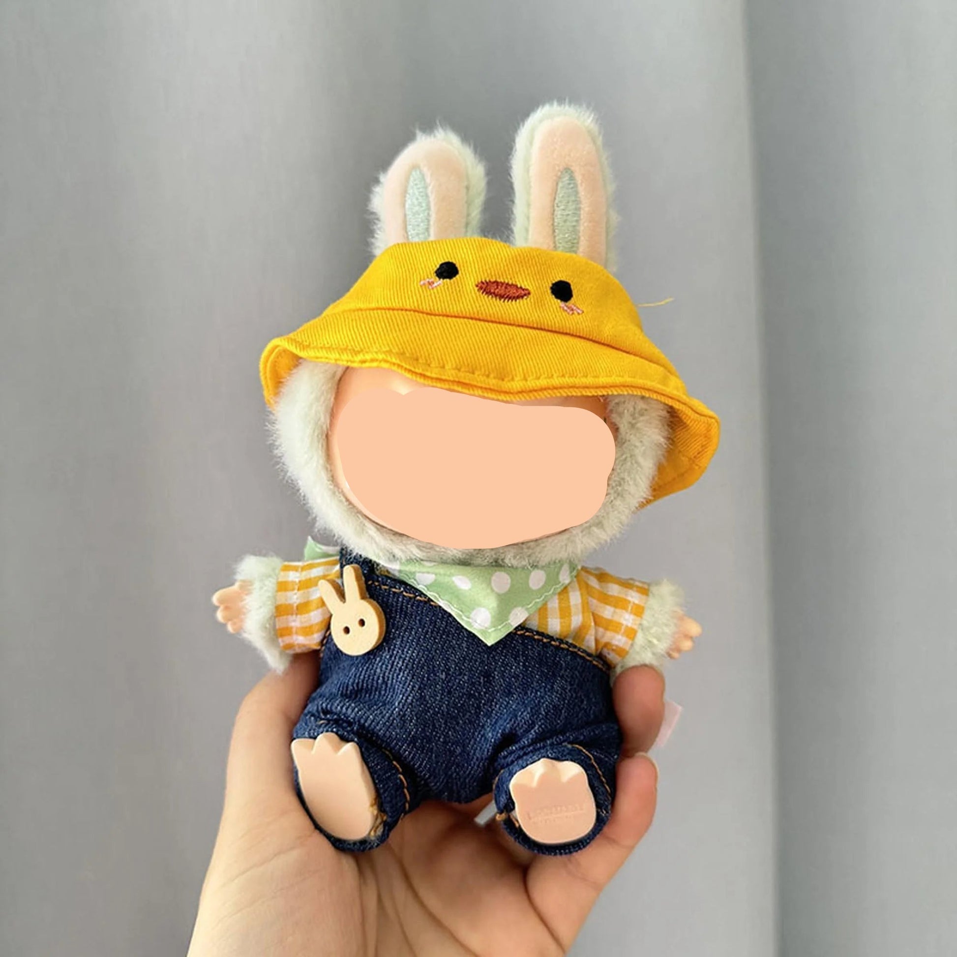 Design: Fall Labubo Clothes Blue Denim Overalls Boy Labubo Outfits Keychain Labubo Clothing