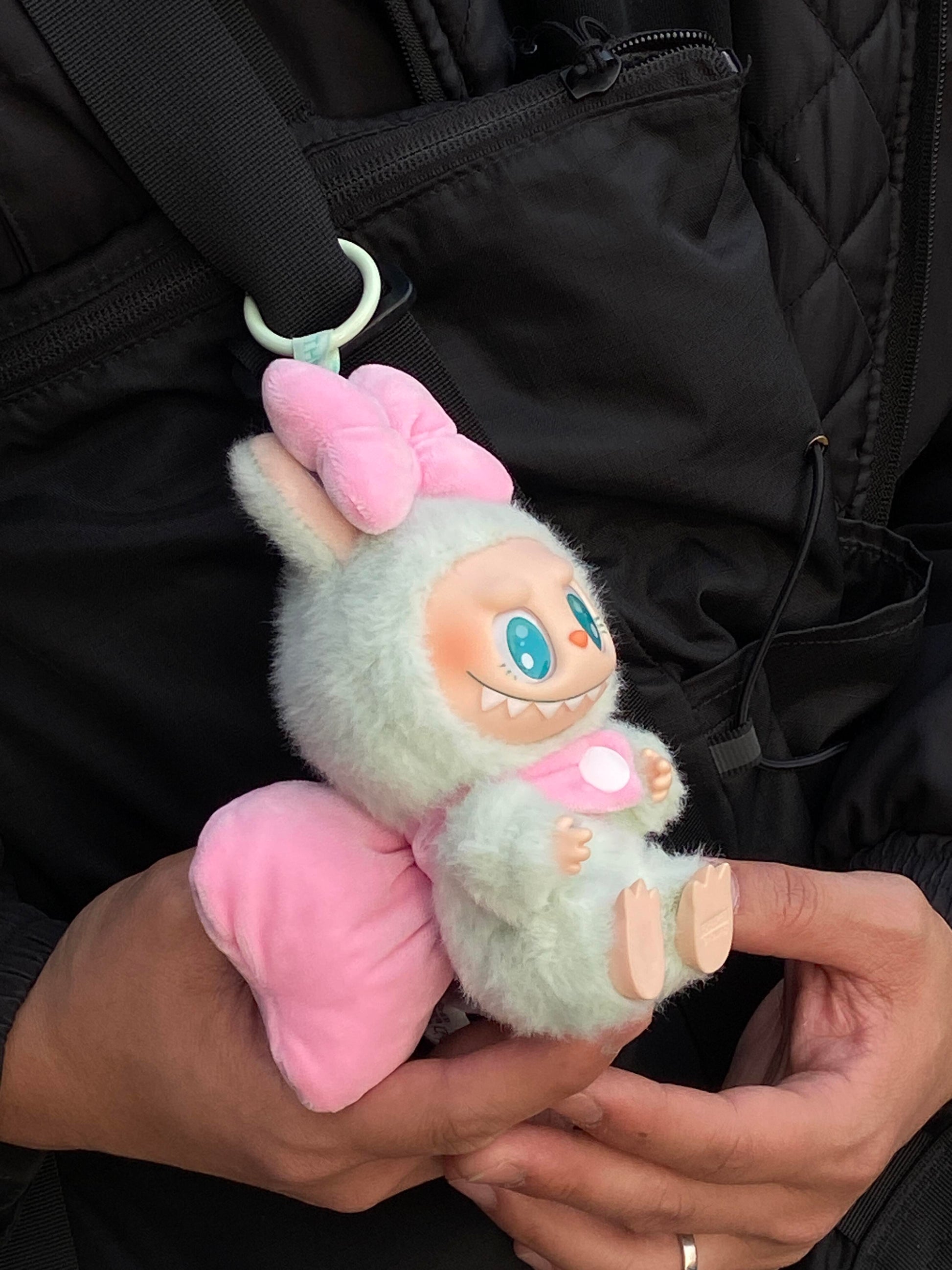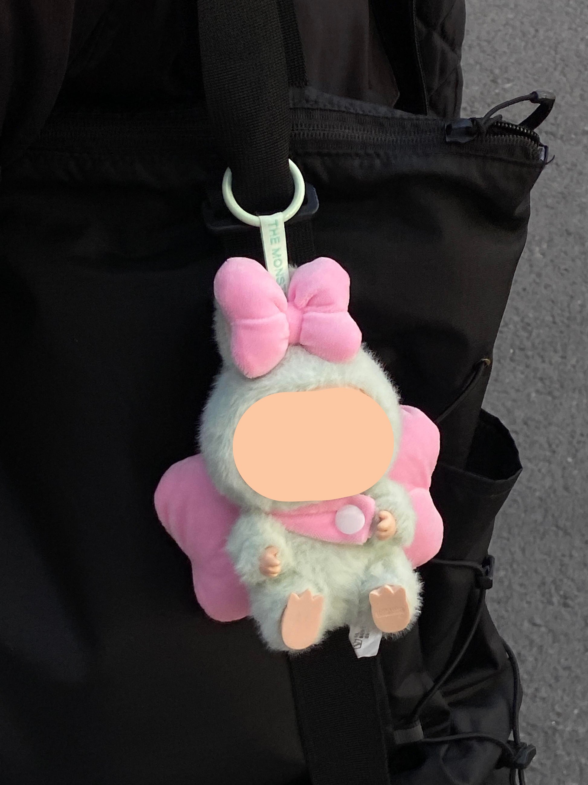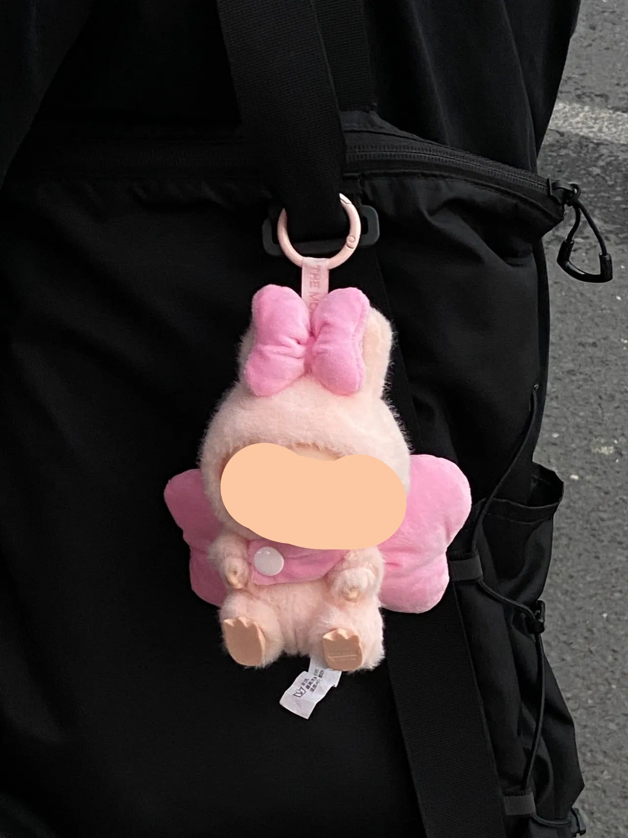 Style: 17cm Labubo Clothing Pink Hair Bow Wings Have a Seat Labubo Doll Clothes