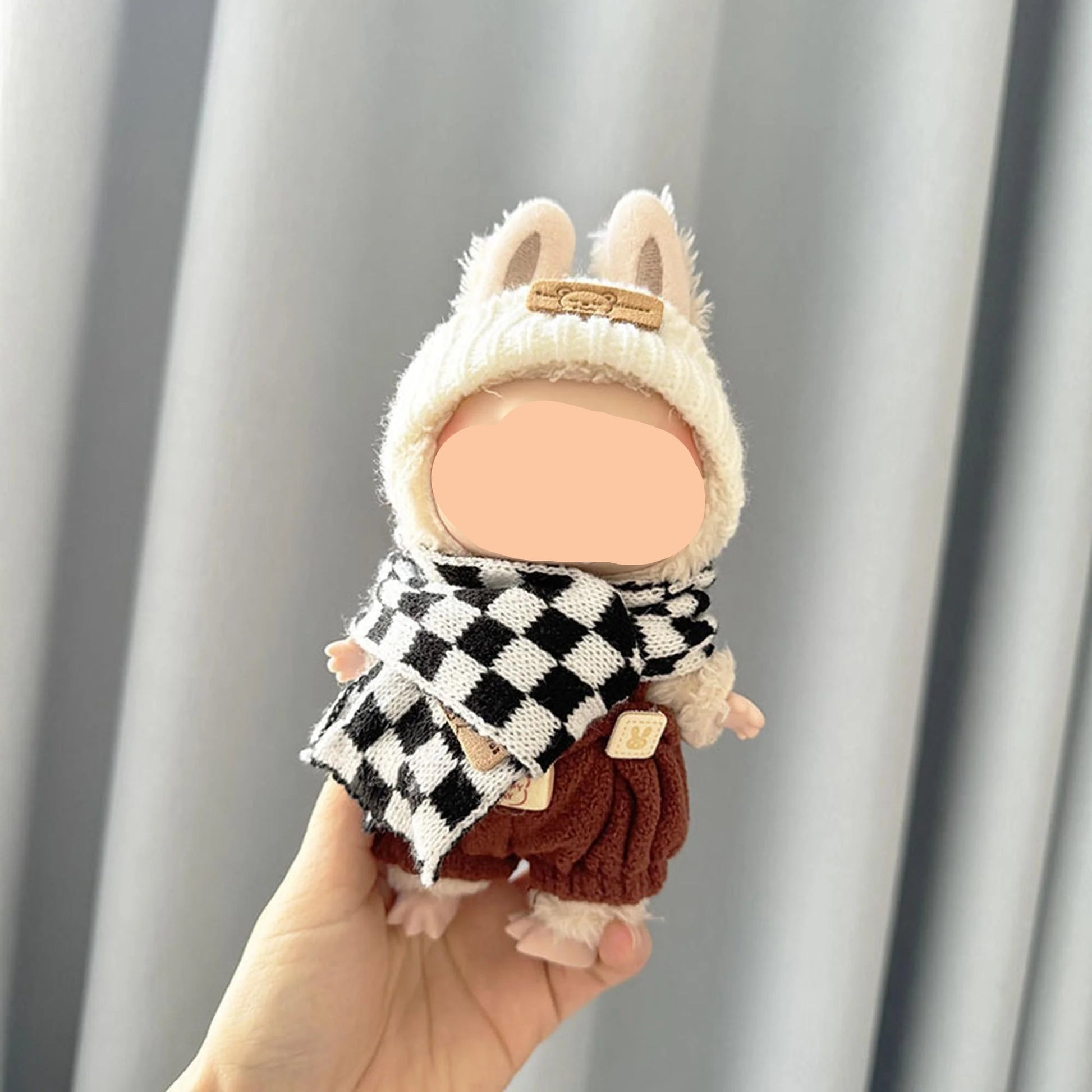 Style: Winter Labubo Clothes Coffee Overalls + Beanie Girl Labubo Outfits Keychain Labubo Clothing